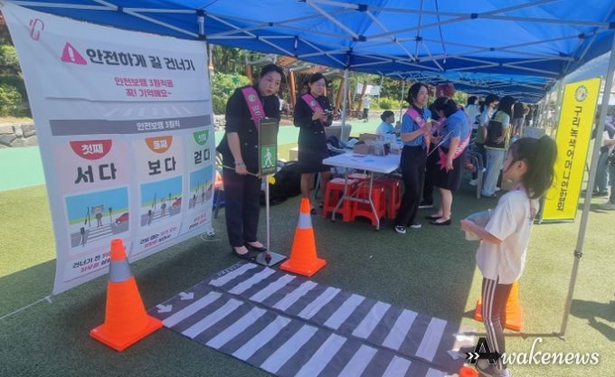 또한 구리 녹색어머니연합회(회장 조윤정)가 함께 참여하여, 학생들이 직접 모형 횡단보도를 보행하는, 학생 눈높이 1대1 맞춤형 홍보를 진행하여 안전보행 3원칙 ‘서다! 보다! 걷다!’ 의 전달 효과를 높였다.