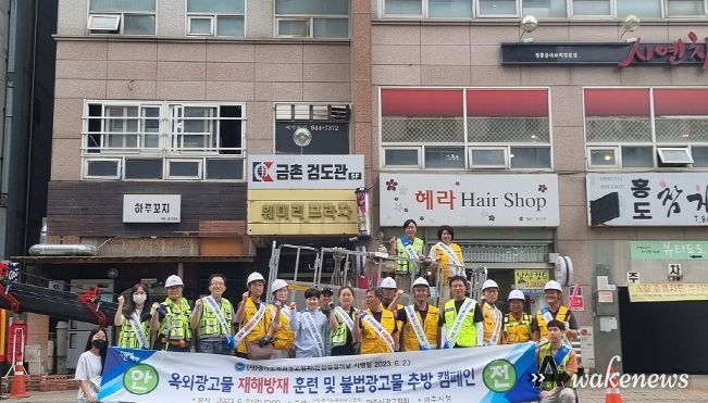 파주시는 지난 2일 금촌 지역(금릉역 앞 상가단지)에서 풍수해 등에 대비한 안전점검을 포함해 옥외광고물 재해방재 모의훈련 및 불법광고물 추방 캠페인을 시행했다.