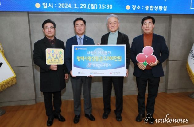 어웨이크뉴스 오경하 기자 | 평택도시공사는 29일에 설 명절맞이 상품권 2000만 원을 전달했다.