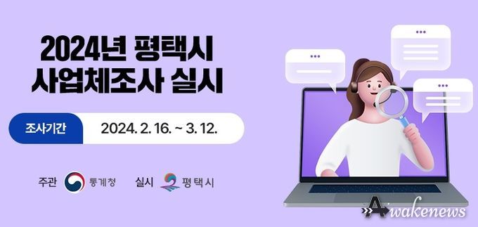 어웨이크뉴스 오경하 기자 | 평택시는 2월 16일부터 3월 12일까지 통계청 주관으로 실시하는 2024년 사업체조사를 실시한다고 밝혔다.