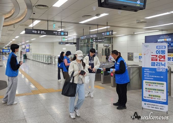 어웨이크뉴스 오경하 기자 | 남양주풍양보건소는 지난 11일 ‘전철역 출입구 10미터 이내’신설 금연구역을 홍보하고, 간접흡연제로 금연 환경을 조성하기 위해 진접역에서 금연 캠페인을 실시했다.