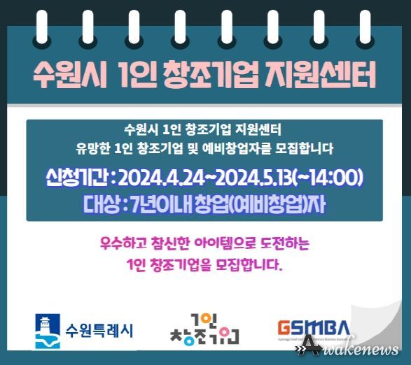 어웨이크뉴스 오경하 기자 | 수원시가 1인 창조기업 지원센터(3D프린터 특화형)에 신규 입주할 기업을 5월 13일까지 모집한다.