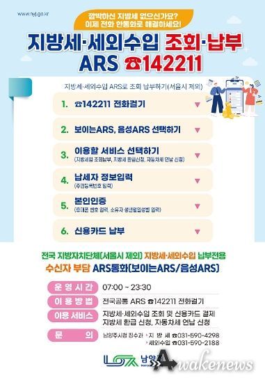 어웨이크뉴스 오경하 기자 | 남양주시는 지방세·세외수입 수납시스템을 고도화한 차세대 지방세입 수납시스템 ARS(☎142211)를 개통했다고 16일 밝혔다.
