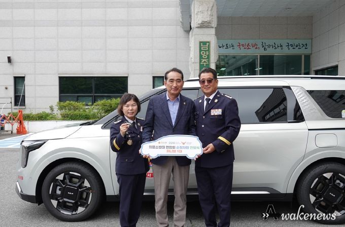 어웨이크뉴스 오경하 기자 | 경기도의회 안전행정위원회 김창식 의원(더불어민주당, 남양주5)은 30일 남양주소방서에서 열린 ‘의용소방대 활동차량 전달식’에 참석해 남양주의용소방대 남·여 연합회장에게 9인승 카니발 차량 1대의 키(key)를 전달했다.