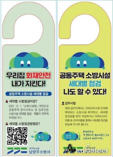 어웨이크뉴스 오경하 기자 | 남양주소방서는 2022년 12월 1일 '소방시설 설치 및 관리에 관한 법률' 개정에 따라 2024년 12월 1일부터 본격 시행되는 공동주택 세대점검에 관한 내용을 입주민에게 널리 알리기 위해 관내 공동주택 관리자와 시민들을 대상으로 홍보에 나섰다.