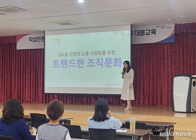 이날 교육은 국민권익위원회 청렴연수원 청렴전문강사이자 어울림 교육 개발원 배정애 원장을 초청하여 “진정한 소통, 트렌디한 조직문화”를 주제로 갑질과 역갑질(을질)의 발생 원인과 그 대응방안을 공직사회에서 발생하는 다양한 사례를 들어 설명했다.