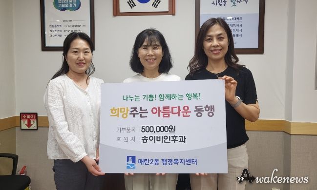 어웨이크뉴스 오경하 기자 | 수원시 영통구 매탄2동에서는 지난 20일 송이비인후과에서 후원한 이웃나눔 성금 전달식이 진행됐다.