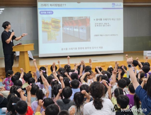 어웨이크뉴스 오경하 기자 | 지난 2일, 수원시 팔달구 우만1동은 데레사유치원을 찾아가 쓰레기 분리배출 교육을 실시했다.