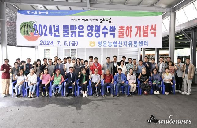 어웨이크뉴스 오경하 기자 | 양평군이 여름철 대표 농산물인 양평 수박의 출하가 본격화됨에 따라 5일 청운농협에서 ‘물 맑은 양평 수박 산지유통센터 공선출하 기념식’을 열었다.