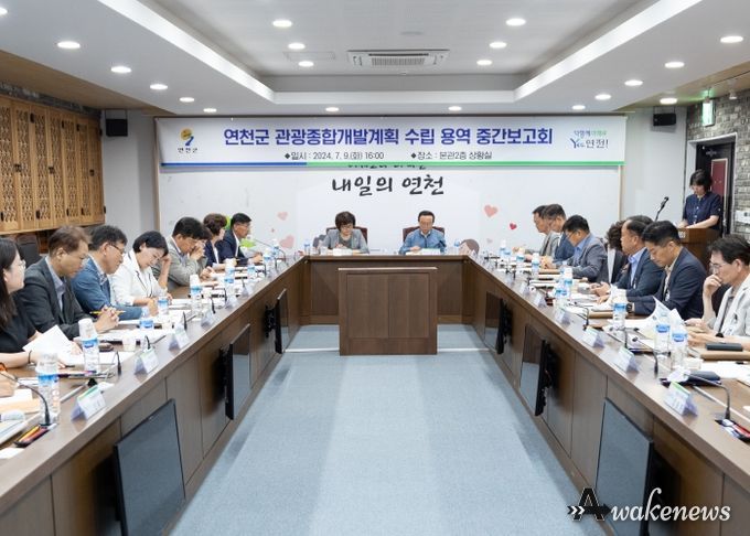 어웨이크뉴스 오경하 기자 | 연천군은 9일 군청 본관 2층 상황실에서 김덕현 연천군수를 비롯해 군의원, 관계 부서장, 자문위원이 참석한 가운데 ‘연천군 관광종합개발계획 수립 용역’ 중간보고회를 개최했다고 밝혔다.