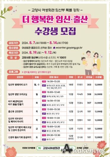 어웨이크뉴스 오경하 기자 | 고양특례시는 임산부의 건강하고 행복한 출산준비를 위해 임산부 특별 강좌 ‘더 행복한 임신·출산’의 수강생을 모집한다고 24일 밝혔다.