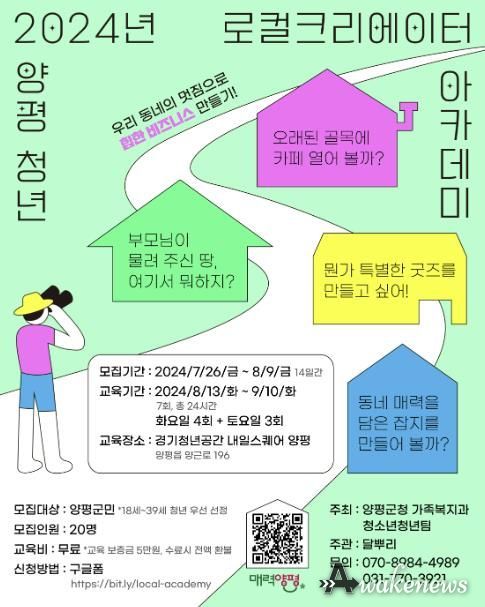 어웨이크뉴스 오경하 기자 | 양평군이 2024년 양평 청년 지역 가치 창업가(로컬크리에이터) 아카데미 교육생을 모집한다.