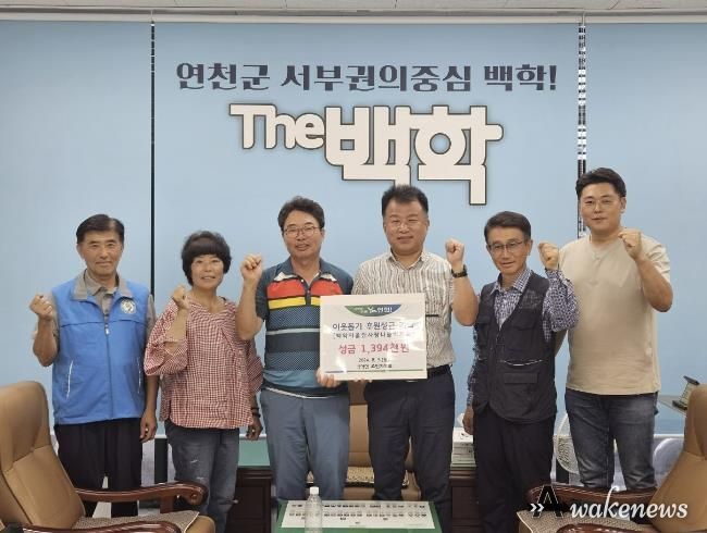 어웨이크뉴스 오경하 기자 | 연천군 백학면 주민자치회는 5일 독거노인을 위한 이웃돕기 성금을 백학면에 기탁했다. 이 성금은 지난달 10일 백학면에서 ‘백학어울림사랑나눔바자회’ 행사를 진행하여 ‘아나바다(아껴쓰고 나눠쓰고 바꿔쓰고 다시쓰다)’ 물품 판매와 음식 판매를 통해 얻은 130만원 상당의 수익금이다.