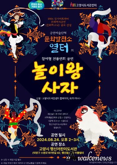 어웨이크뉴스 오경하 기자 | 고양특례시 행신어린이도서관이 오는 8월 24일 오후 2시에 참여형 전통연희 공연 ‘놀이왕 사자’를 개최한다고 밝혔다. 이 행사는 경기아트센터의 2024년 문화피크닉 사업으로 공연예술단체인 ‘문화발전소 열터’가 맡아 진행한다.