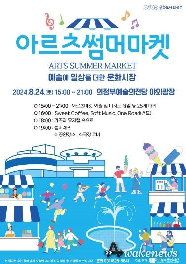 어웨이크뉴스 오경하 기자 | (재)의정부문화재단은 예술에 일상을 더한 문화시장 '아르츠썸머마켓(Arts Summer Market)'을 오는 8월 24일 의정부예술의전당 야외광장에서 개최한다.
