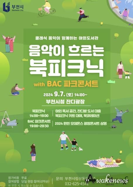 어웨이크뉴스 오경하 기자 | 부천시는 오는 9월 7일 오후 2시부터 7시까지 부천시청 잔디광장에서 ‘음악이 흐르는 북 피크닉’ 행사를 개최한다고 밝혔다.