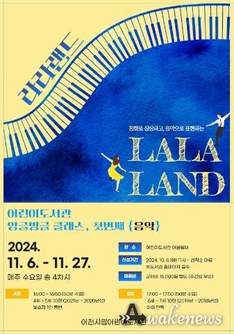 ‘라라랜드’는 음악을 동화 속 장면 안에서 몸으로 익히는 유아 음악교육 프로그램으로 11월 6일부터 11월 27일까지 매주 수요일 총 4회, 4세~5세와 6세~7세를 대상으로 운영한다.