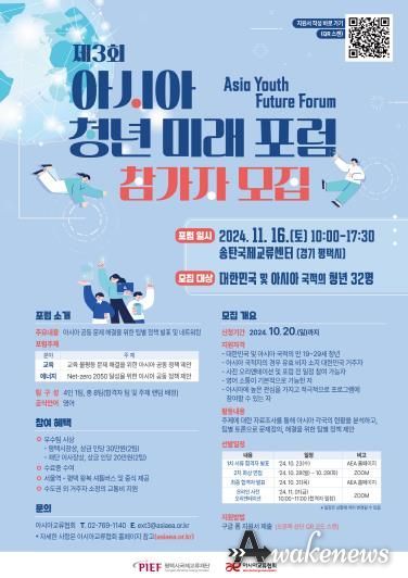 어웨이크뉴스 오경하 기자 | 평택시국제교류재단이 오는 11월 16일 토요일 송탄국제교류센터에서 진행되는 ‘제3회 아시아청년미래포럼’ 개최에 앞서 해당 포럼에 참가할 대한민국 및 아시아 국적 청년 참가자를 모집한다고 밝혔다.