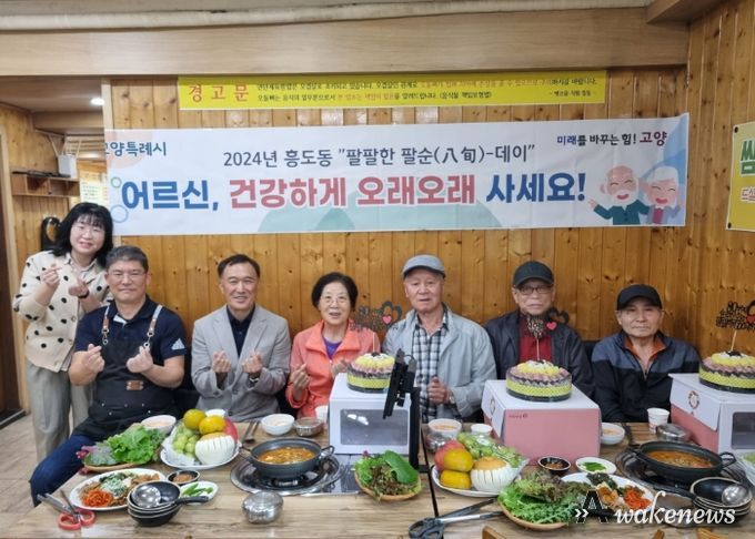 어웨이크뉴스 오경하 기자 | 고양특례시 덕양구 흥도동은 지난 11일, 관내 식당인 옛고을 쌈밥에서 팔순을 맞은 저소득 어르신을 위한 ‘팔팔한 팔순-데이’행사를 개최했다.