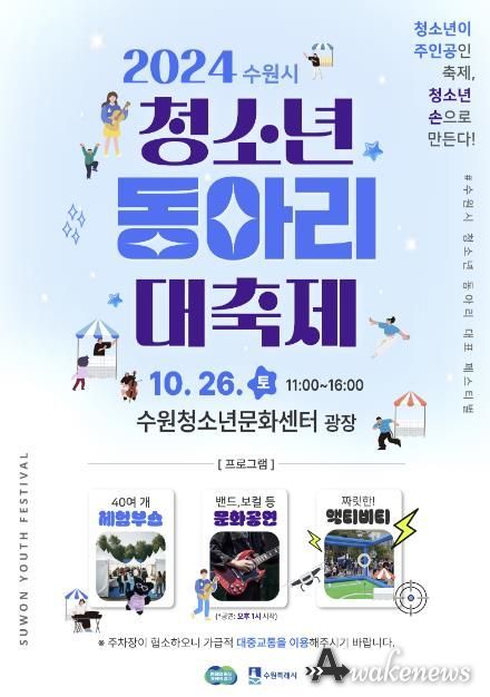 어웨이크뉴스 오경하 기자 | 수원 청소년들이 기획하고, 참여하는 ‘2024년 청소년동아리 대축제’가 26일 오전 11시부터 오후 4시까지 수원청소년문화센터 광장에서 열린다.