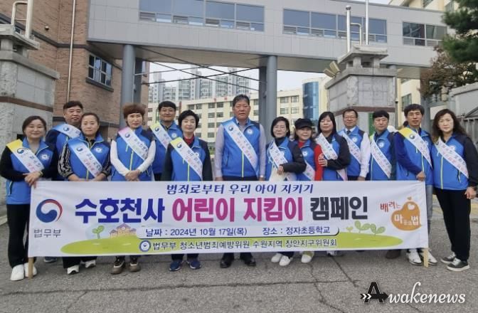 어웨이크뉴스 오경하 기자 | 수원시 장안구는 지난 17일, 법무부 청소년 범죄예방위원 장안지구위원회 및 정자초등학교와 함께 정자초등학교 정문에서 학교폭력 예방 캠페인을 실시했다.