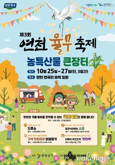어웨이크뉴스 오경하 기자 | 연천군은 25일부터 27일까지 3일간 전곡리유적에서 ‘제3회 연천율무축제(농특산물 큰장터)’를 개최한다.