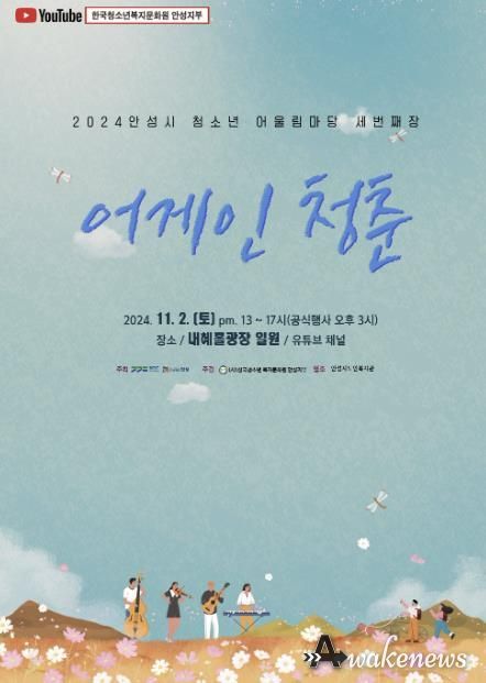 오는 11월 2일 오후 1시부터 5시까지(공식행사 3시) 내혜홀광장에서 안성 어르신들과의 소통을 목적으로 어르신동행 감동프로그램으로 기획된 2024 안성시청소년어울림마당 세번째 장 ‘어게인청춘’이 개최된다.