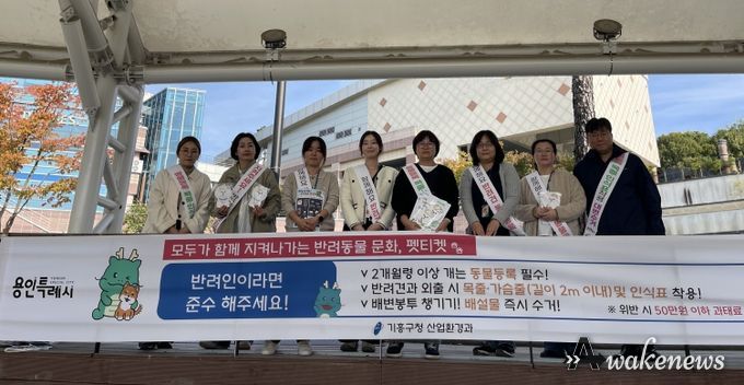 어웨이크뉴스 오경하 기자 | 용인특례시 기흥구는 성숙한 반려동물 문화를 확산하기 위해 동백호수공원 일대에서 펫티켓 캠페인을 진행했다고 30일 밝혔다.