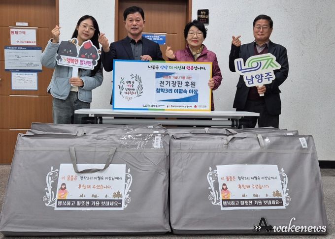 어웨이크뉴스 오경하 기자 | 이월숙 별내면 청학3리 이장은 14일, 관내 취약계층의 따뜻한 겨울나기를 위해 전기장판 8매를 별내면에 기탁했다.