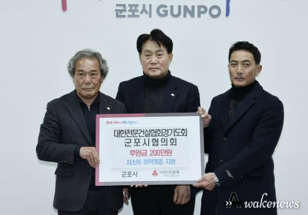 어웨이크뉴스 오경하 기자 | 군포시는 16일 대한전문건설협회경기도회 군포시협의회로부터 이웃돕기를 위한 후원금 200만원을 기탁받았다