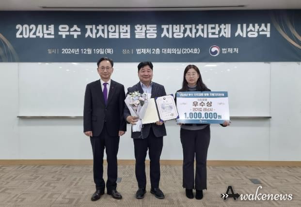 이번 법제처 선정 우수조례에 대한 시상식은 19일 오후 2시 정부세종청사에서 열려 성남시는 법제처장 표창을 받았다.