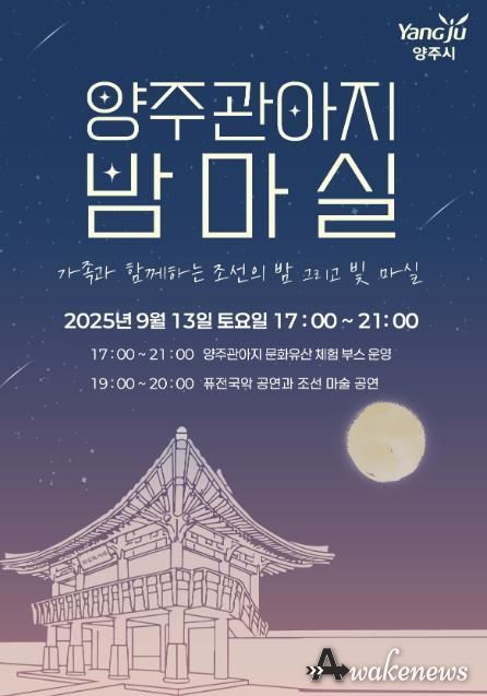 어웨이크뉴스 오경하 기자 | 양주시가 오는 13일, 양주관아지에서 가을밤의 낭만과 전통의 멋을 한껏 느낄 수 있는 특별한 야간 문화행사 '양주밤마실'을 개최한다고 밝혔다.