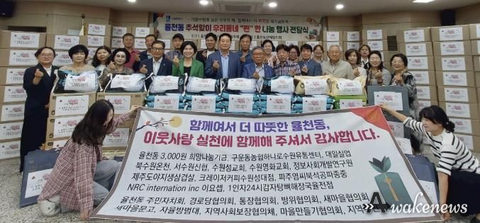 어웨이크뉴스 오경하 기자 | 수원시 장안구 율천동은 지난 29일, 추석명절을 맞이하여 관내 어려운 이웃에게 따뜻한 나눔을 전하고자 우리동네 ‘찐’한 나눔행사 전달식을 개최했다.