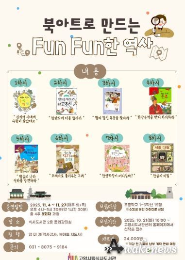 어웨이크뉴스 오경하 기자 | 고양특례시 식사도서관은 오는 11월 4일부터 공공도서관 어린이 독서문화 프로그램 ‘북아트로 만드는 FunFun한 역사’를 운영한다.