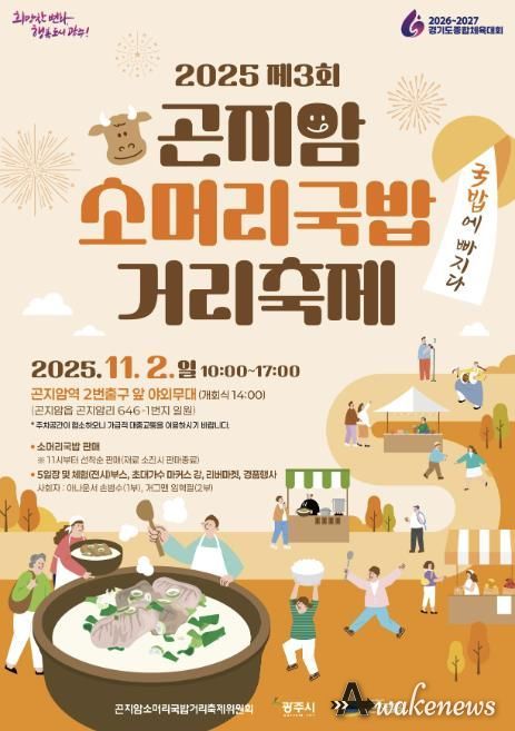 어웨이크뉴스 오경하 기자 | 광주시는 ‘곤지암 소머리국밥 거리 축제’를 오는 11월 2일 곤지암 일원에서 열린다고 22일 밝혔다.