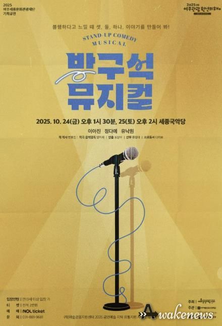 어웨이크뉴스 오경하 기자 | 여주세종문화관광재단이 오는 10월 24일~25, 양일간 예술경영지원센터의 공모사업인 '공연예술 지역 유통지원 사업'의 일환으로 뮤지컬‘방구석 뮤지컬’을 세종국악당에서 개최한다.