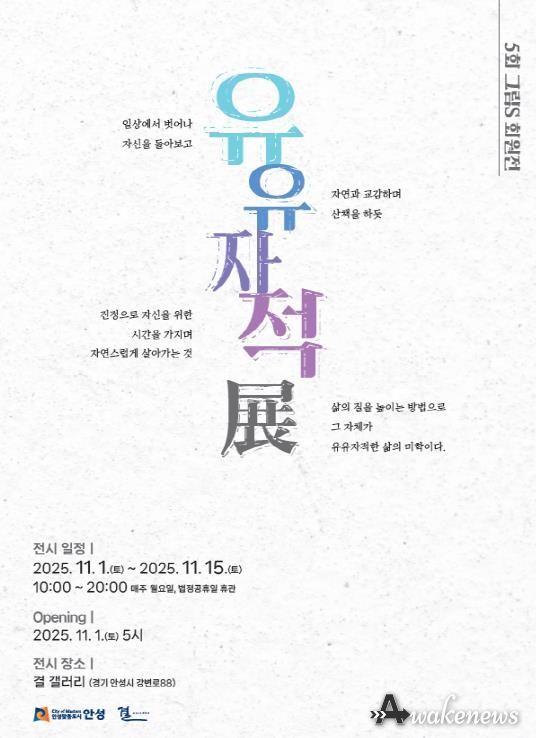 어웨이크뉴스 오경하 기자 | 안성천 우리동네 작은미술관 결갤러리에서는 오는 11월 1일부터 15일까지 그림스아뜰리에 제5회 회원전 ‘유유자적’이 열린다. 이번 전시는 바쁜 일상 속에서 잠시 걸음을 멈추고, 자연과 교감하듯 마음을 산책하는 여유의 시간을 주제로 마련됐다.