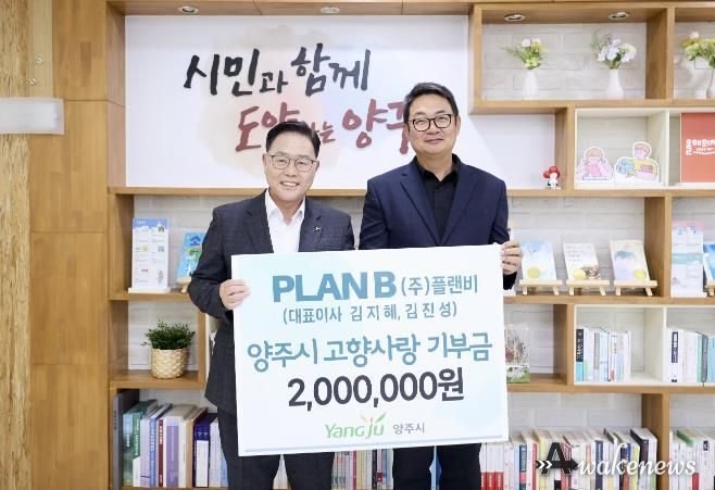 어웨이크뉴스 오경하 기자 | ㈜플랜비가 5일 오전 양주시에 지역 발전을 위해 고향사랑기부금 200만 원을 전달했다.