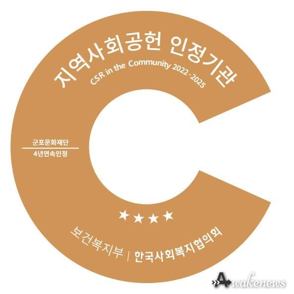 어웨이크뉴스 오경하 기자 | 군포문화재단이 지역사회공헌 인정제 4년 연속 선정이라는 성과를 거두며, 지역사회 공익활동에서 지속성과 우수성을 다시 한 번 인정받았다. 이는 전국 문화재단 가운데 유일하게 4년 연속 선정된 사례이다.