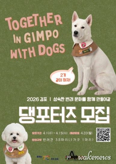 어웨이크뉴스 오경하 기자 | 김포시는 올바르고 책임 있는 반려문화 확산을 이끌 ‘김포 댕포터즈’를 모집한다고 밝혔다.