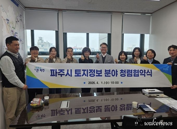 어웨이크뉴스 오경하 기자 | 파주시는 지난 1일 지적측량 수행기관인 한국국토정보공사 파주지사와 ‘토지정보 분야 청렴협의체’를 구성하는 내용으로 협약을 체결했다.