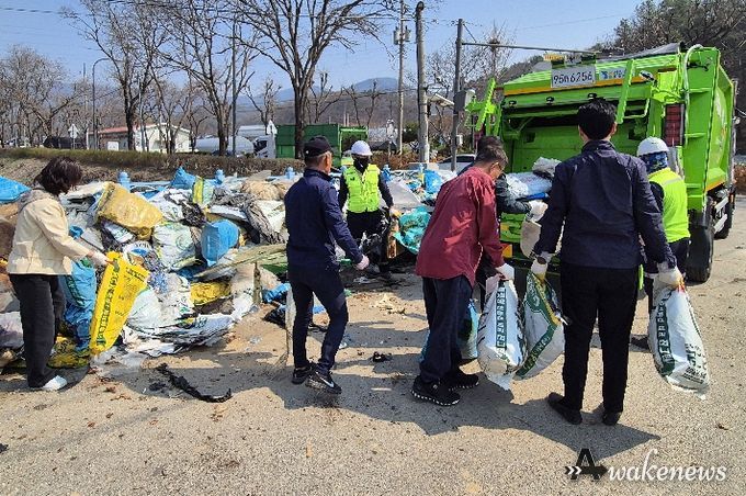 작업 첫날인 4월 1일에는 상·하광교동 주민을 비롯해 환경관리원 등 20여 명이 자발적으로 참여한 가운데 영농 폐비닐과 재활용품, 일반 쓰레기 등을 꼼꼼하게 분리했다. 이어 2일에는 전날 분리해 둔 폐기물을 수거 차량이 싣고 주변 잔여 쓰레기를 정돈하는 것으로 이틀간의 환경 정비 일정을 마무리했다.