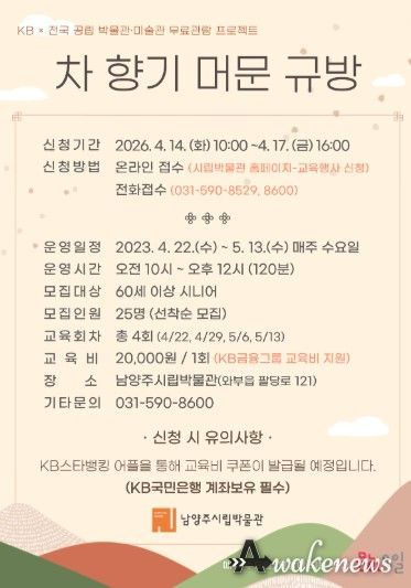 어웨이크뉴스 오경하 기자 | 남양주시는 오는 22일부터 남양주시립박물관이 시니어 대상 체험 프로그램 ‘차 향기 머문 규방’ 운영하고, 이에 앞서 14일부터 참여 신청을 받는다고 7일 밝혔다.