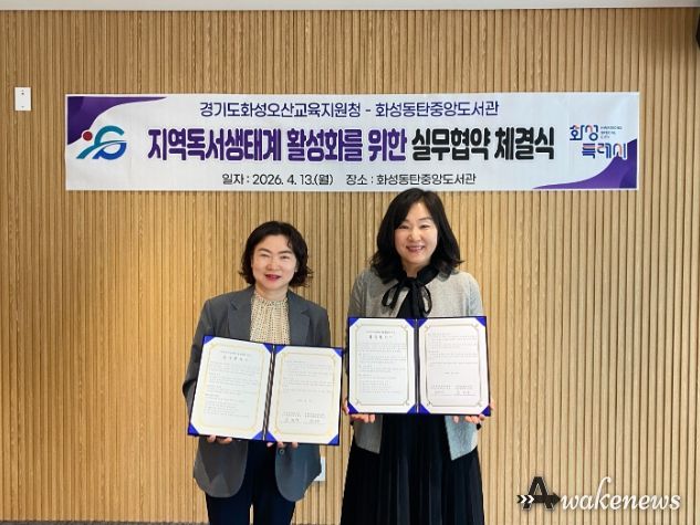 어웨이크뉴스 오경하 기자 | 화성특례시 화성동탄중앙도서관은 화성오산교육지원청과 13일 화성동탄중앙도서관에서 독서문화진흥 및 상호 협력을 위한 실무협약을 체결했다.