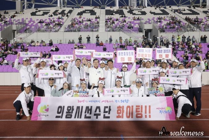 어웨이크뉴스 오경하 기자 | 의왕시 선수단이 4월 16일, 광주시 G-스타디움에서 열린 '제72회 경기도체육대회 2026 광주' 개회식에 참석해 앞으로 치러질 경기에서의 선전을 다짐했다.