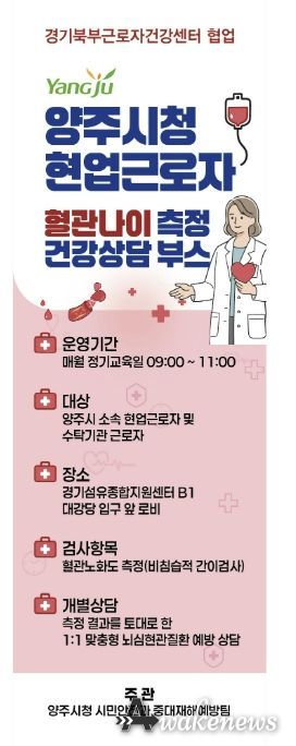 어웨이크뉴스 오경하 기자 | 양주시가 현업근로자의 건강 증진과 뇌심혈관계질환 예방을 위해 오는 4월 22일부터 연말까지 ‘찾아가는 근로자 건강상담 부스’를 운영한다.