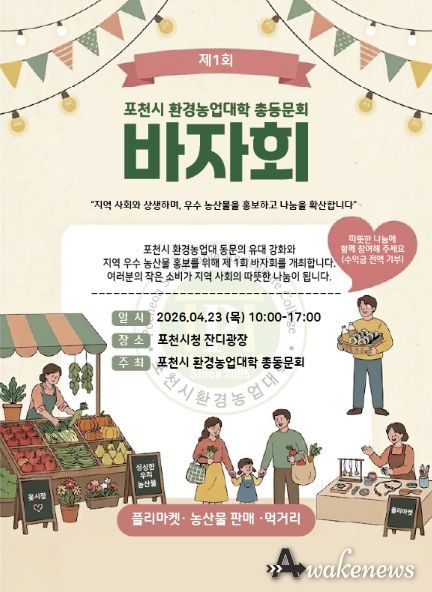 어웨이크뉴스 오경하 기자 | 포천시 환경농업대학 총동문회가 오는 4월 23일, 지역사회와의 상생과 나눔을 실천하기 위한 ‘제1회 나눔 바자회’를 개최한다.