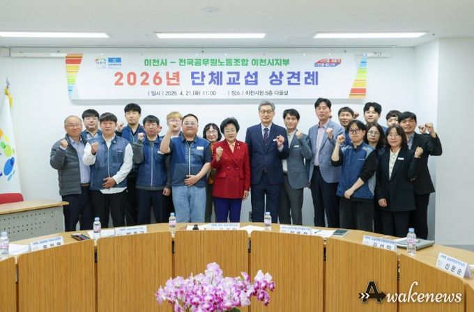 어웨이크뉴스 오경하 기자 | 이천시와 전국공무원노동조합 이천시지부는 4월 21일 시청 5층 다올실에서 노사 양측 대표 교섭위원인 김경희 이천시장과 이재인 공무원노조 지부장 등 노사 양측 교섭위원 20여명이 참석한 가운데‘2026년도 공무원노조 단체교섭 상견례’를 가졌다.