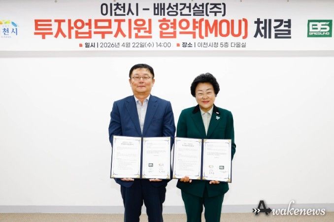어웨이크뉴스 오경하 기자 | 이천시가 22일 배성건설㈜와 203억 원 규모의 투자업무지원협약을 체결하고, 기업의 신규 공장 신설을 본격 지원한다.