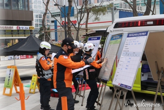 광명소방서(서장 박평재)는 24일 오후 2시 광명역 GDIC 복합건축물에서 동원자원 관리능력과 통합지휘체계 확립 및 표준작전절차 수행 등 재난 대응능력 강화를 위한 불시 긴급구조통제단 가동훈련을 실시했다